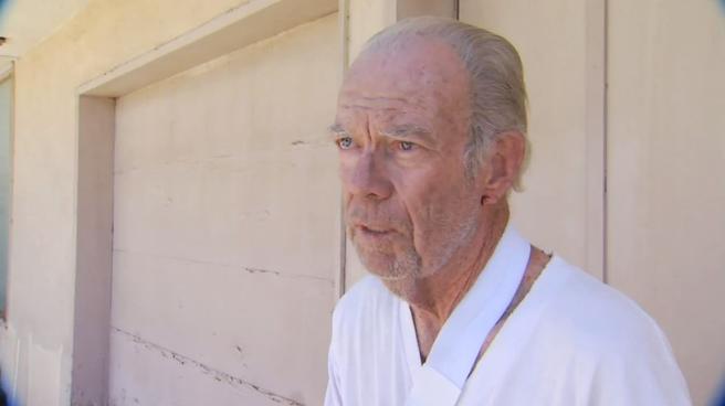 Tom Greer, wearing his arm in a sling said he came back to his home Tuesday evening and found the two suspects raiding through his house.